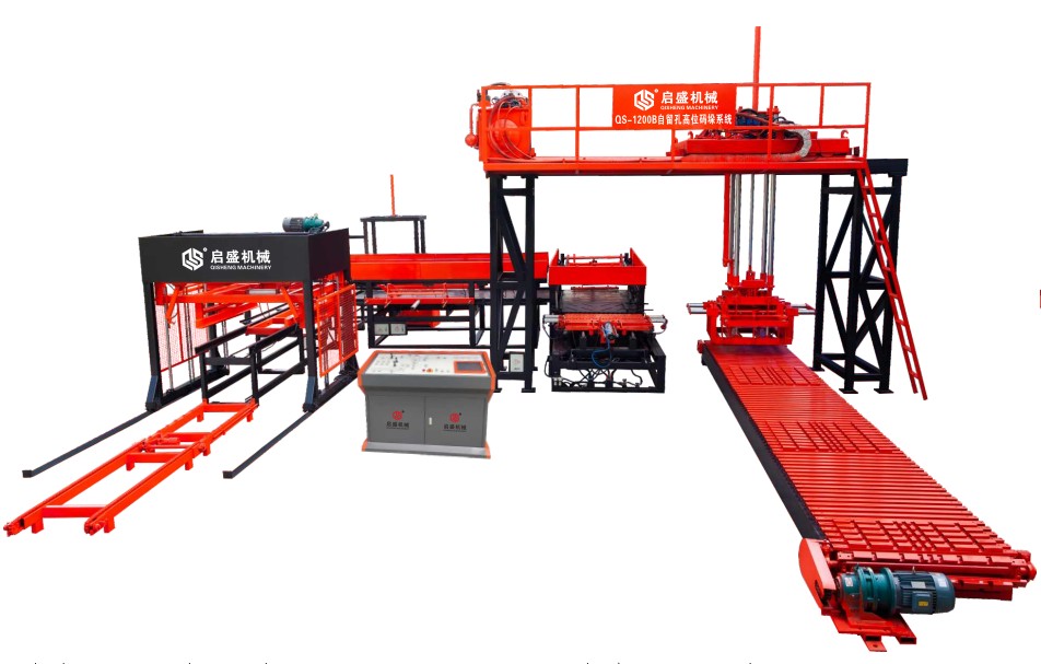 QS-1200B型自留孔高位碼垛系統(tǒng)是公司為了適應(yīng)市場多元化發(fā)展需要潛心研發(fā)的擁有獨(dú)立自主知識產(chǎn)權(quán)的專利產(chǎn)品.生產(chǎn)線適用于簡易型砌塊生產(chǎn)線的干產(chǎn)品碼垛,屬于半自動碼跺生產(chǎn)線,一般情況下獨(dú)立設(shè)置于產(chǎn)品養(yǎng)護(hù)堆場附近,對于養(yǎng)護(hù)好的制品就地碼垛,亦可串聯(lián)于砌塊生產(chǎn)線之中,實(shí)施在線碼垛。