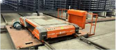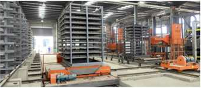 本生產線預制成型的濕磚由升板機將其提升放置在鐵架之上每一層磚板相互隔離,放滿之后可用又車將整個鐵架轉移至養(yǎng)護區(qū),也可配套新能源智能子母車將其轉運至養(yǎng)護窯內進行養(yǎng)護。